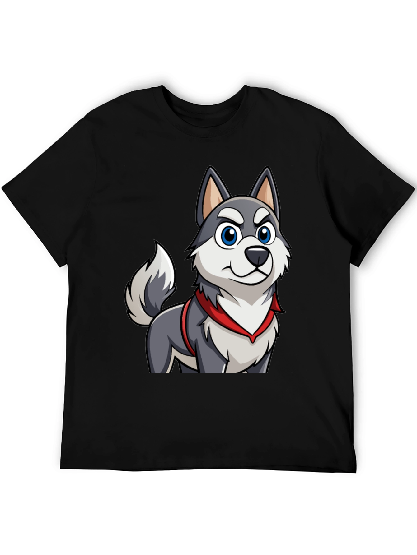 Cartoon Husky Dog Graphic Tee - Mens Black T-Shirt