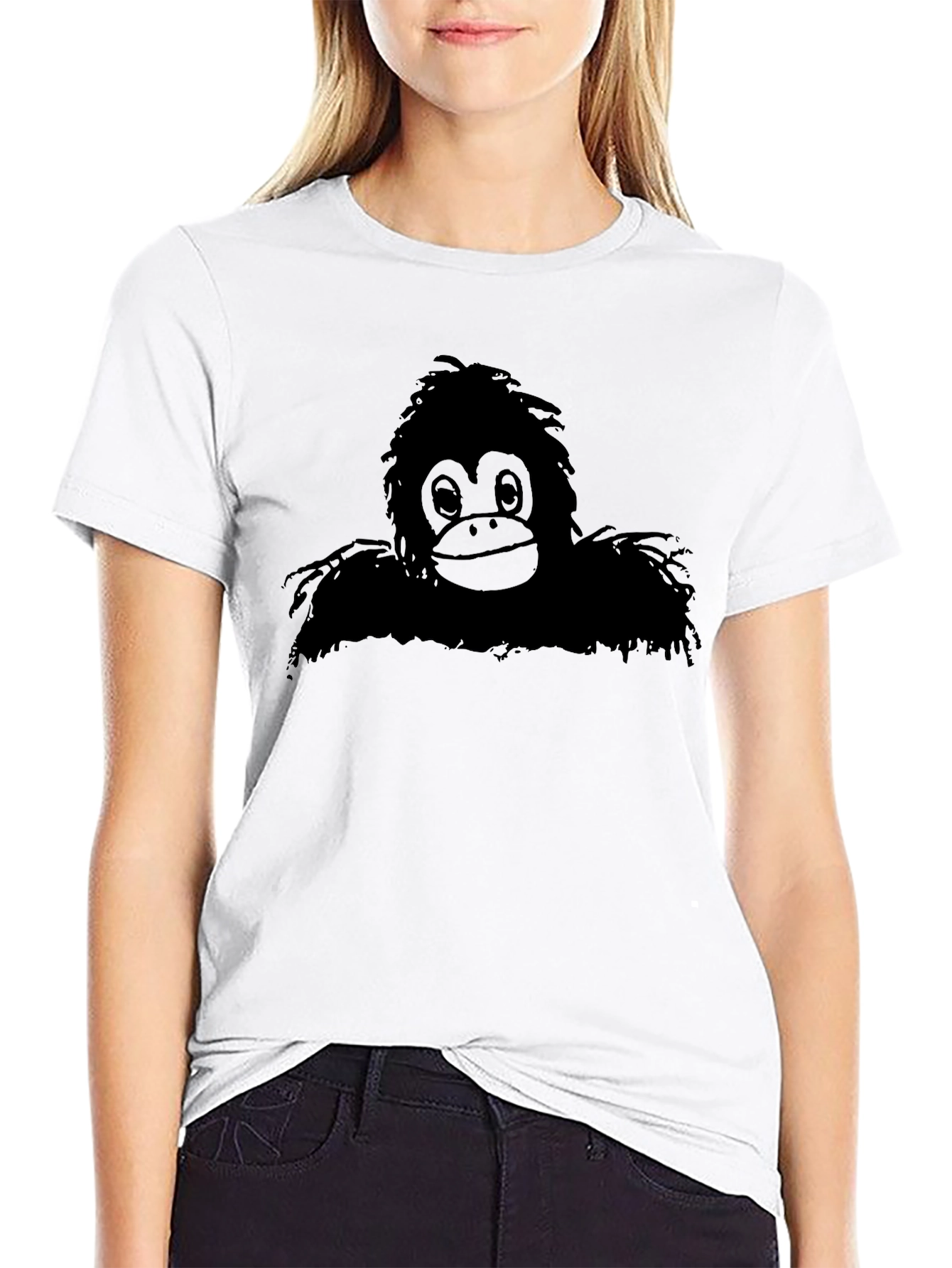 Show off your playful side with this unique black T-shirt. This tee features a cartoon orangutan graphic on the front, creating a standout piece for casual wear. Made from a comfortable, breathable fabric, this T-shirt offers both style and ease. The design is perfect for adding a touch of fun to any outfit. Whether you're heading out with friends, relaxing at home, or simply looking for a conversation starter, this T-shirt is an ideal choice. Enjoy the perfect combination of comfort, quality, and eye-catching design. It's a great way to showcase your personality and love for fun, quirky fashion.