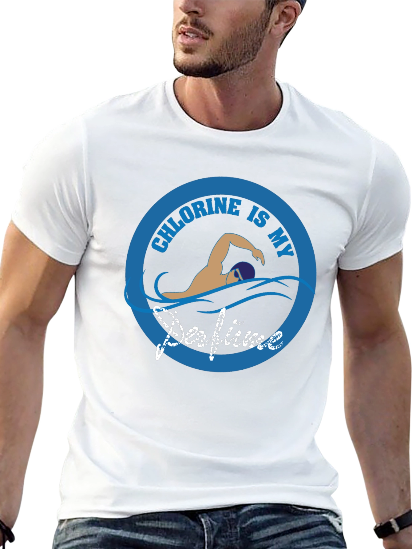 Show off your love for swimming with this unique graphic t-shirt. The design features a blue circular graphic that shows a swimmer with the text "Chlorine Is My Perfume". This shirt is a great way to express your passion for swimming and stand out from the crowd. Perfect for swimmers, coaches, or anyone who loves the sport. Wear it to practice, competitions, or just around town. Makes a great gift for the swimmer in your life. Available in a variety of sizes.