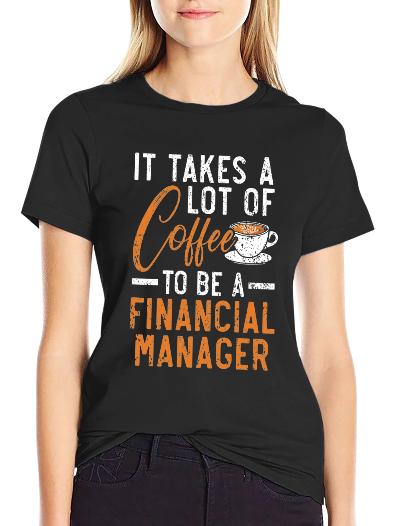 Start your day off right with this humorous and stylish graphic tee! Made from comfortable, breathable cotton, this black t-shirt features a bold design that reads "IT TAKES A LOT OF Coffee TO BE A FINANCIAL MANAGER." The word "Coffee" is artfully displayed in a coffee color, complete with a charming coffee cup graphic, adding a touch of personality. Perfect for financial professionals with a sense of humor, or anyone who appreciates a good cup of coffee. This tee is ideal for casual wear, office gatherings, or as a fun gift for your favorite financial guru. Get yours today and let the world know you're fueled by caffeine!