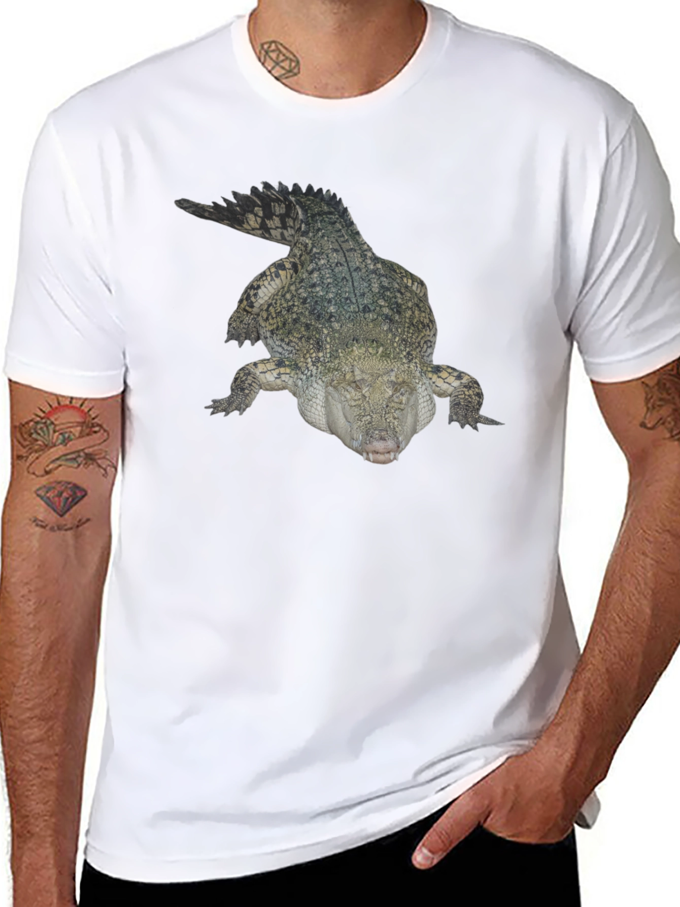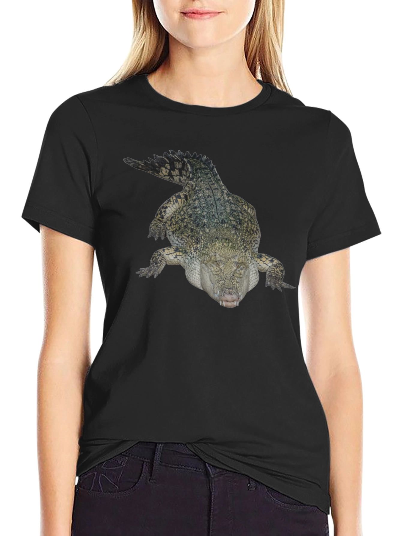 This striking black t-shirt features a unique, eye-catching print of a crocodile, adding a bold statement to your casual wardrobe. Made from what appears to be soft, breathable cotton, this tee offers both comfort and style. The detailed crocodile graphic is realistically rendered, creating a standout visual effect. Ideal for everyday wear, casual outings, or expressing your individual style, this t-shirt pairs effortlessly with jeans, shorts, or chinos. It's perfect for those who appreciate nature-inspired designs or seek a distinctive addition to their t-shirt collection. This eye-catching crocodile tee is sure to turn heads and spark conversation wherever you go.