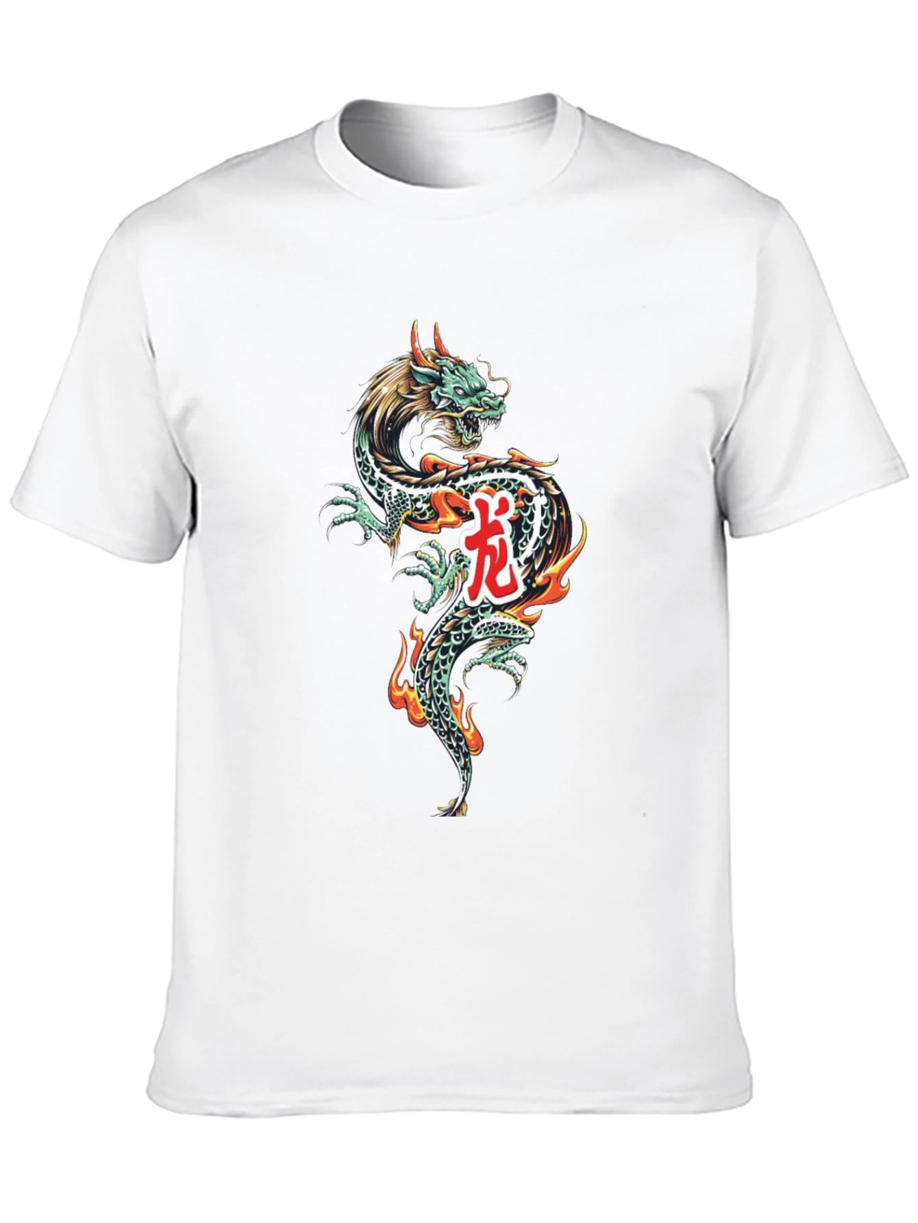 Make a bold statement with this eye-catching black T-shirt. It features a vibrant dragon graphic with intricate detailing and fiery accents. The design showcases a unique fusion of traditional and modern aesthetics, making it a standout piece for any wardrobe. Crafted from soft, breathable cotton blend, this tee offers all-day comfort and durability. Perfect for casual outings, concerts, or adding an edgy touch to your everyday style. Pair it with jeans or shorts for a cool, confident look. Express your individuality and unleash your inner dragon with this must-have tee!
