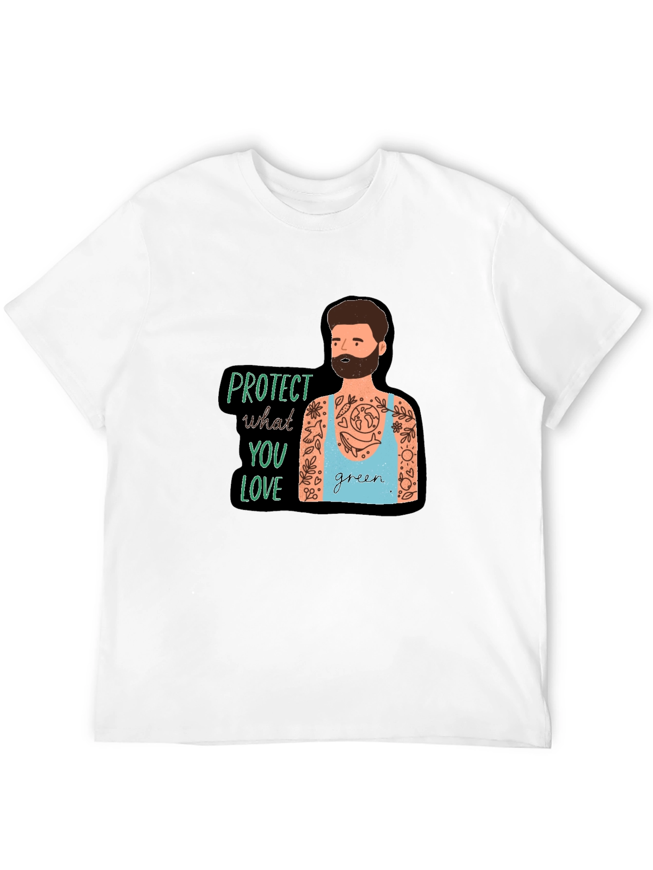 Show your love for nature with this stylish black t-shirt. Featuring a unique graphic design with earth-friendly imagery and the inspiring message "Protect what you love - green". The vibrant design is printed on a soft, comfortable black fabric, perfect for everyday wear. Made from high-quality materials, this t-shirt offers a great fit and long-lasting durability. Ideal for casual outings, environmental awareness events, or simply expressing your commitment to sustainability. Make a statement and support a greener future with this eco-conscious t-shirt.