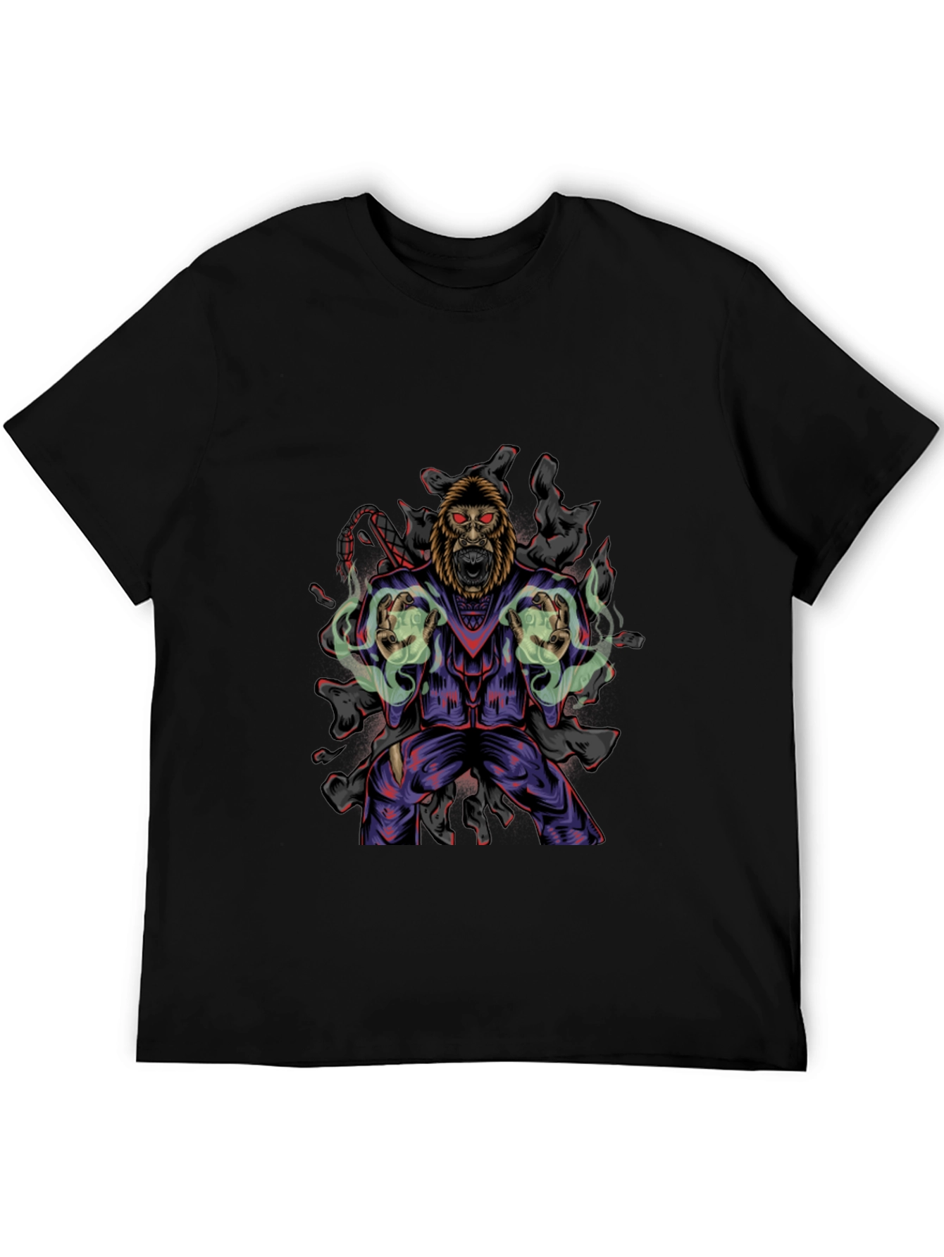 Unleash your inner beast with this striking black t-shirt. Featuring a bold graphic of a gorilla wizard in a purple robe, casting spells with glowing green energy. The design is set against a dark, smoky background. Made from soft, breathable fabric for ultimate comfort. Perfect for casual wear, conventions, or making a statement. Add a touch of the mystical to your wardrobe with this unique and eye-catching tee. Great gift idea for fantasy lovers and gorilla enthusiasts alike.