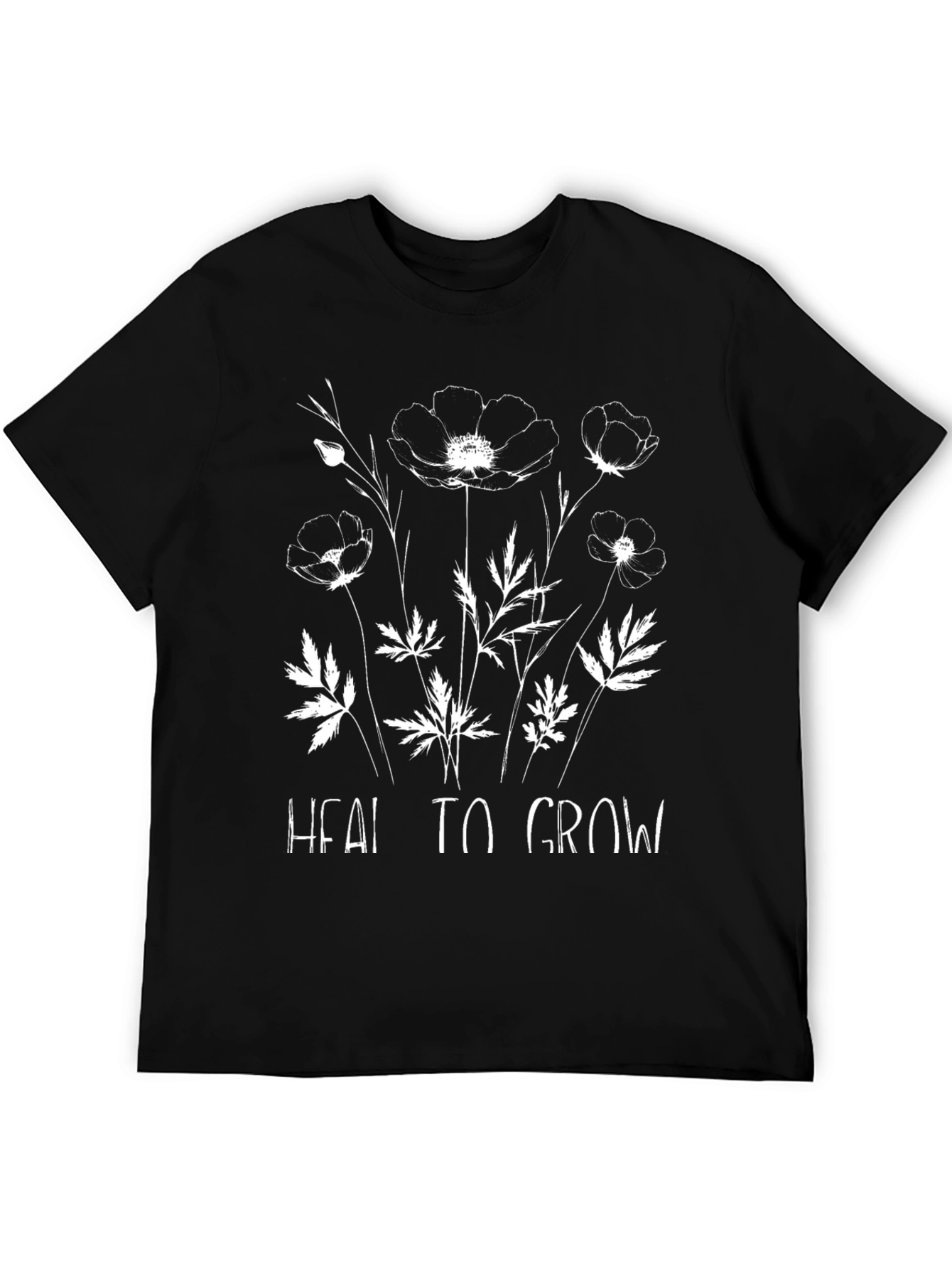 Showcase your style with this black t-shirt featuring a delicate floral design and the empowering message, "Heal to Grow." Crafted from a soft, comfortable fabric, this tee offers a relaxed fit perfect for everyday wear. The white floral print adds a touch of nature-inspired charm, making it a versatile piece to pair with jeans, shorts, or skirts. Whether you're running errands or meeting friends, this t-shirt combines comfort and style effortlessly. Embrace the message and let this tee be a reminder of growth and resilience in your journey.