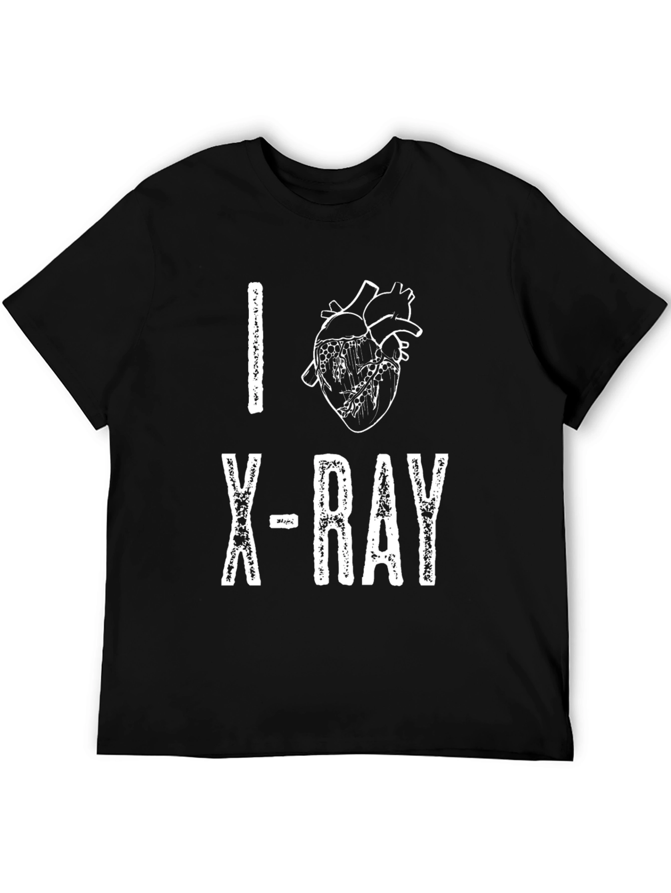 Show your love for anatomy with this unique black t-shirt! The design features an anatomical heart graphic replacing the traditional heart symbol, along with 'I' and 'X-RAY' printed in a distressed white font. Crafted from comfortable cotton, this tee is perfect for medical professionals, students, or anyone with an interest in the human body. Its classic fit makes it a great addition to any casual wardrobe. Wear it to lectures, the hospital, or just out and about to showcase your passion for medicine and anatomy. A conversation starter, this shirt is a must-have for science enthusiasts.