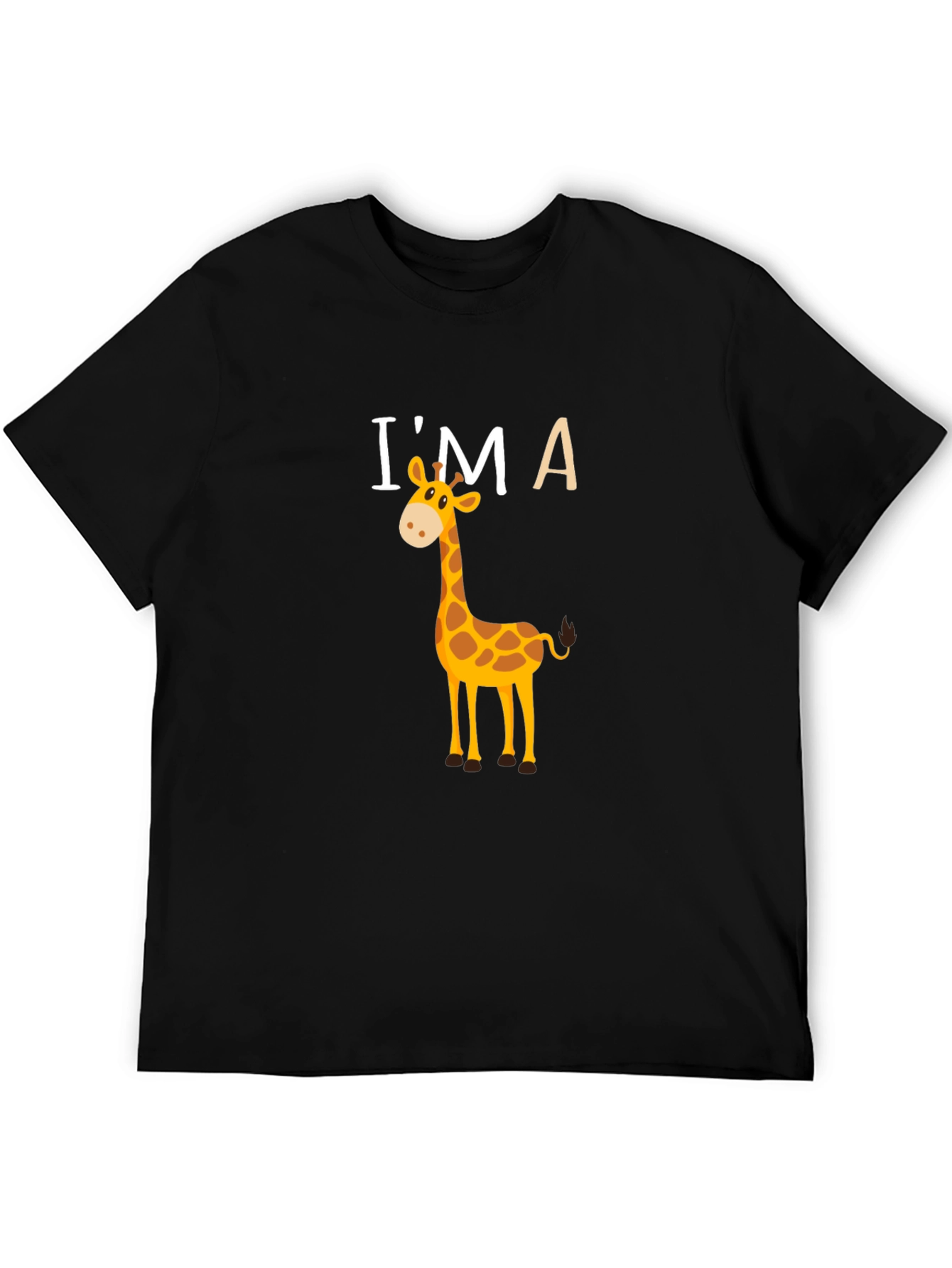 Show off your love for wildlife with this unique "I'm A Giraffe" graphic t-shirt. Made from soft, breathable fabric, this black tee features a vibrant and playful giraffe illustration, perfect for casual wear. The eye-catching design is ideal for animal lovers and those who appreciate fun, quirky apparel. Comfortable and stylish, this shirt can be dressed up or down for everyday outings or themed events. Grab yours today and add a touch of whimsy to your wardrobe!