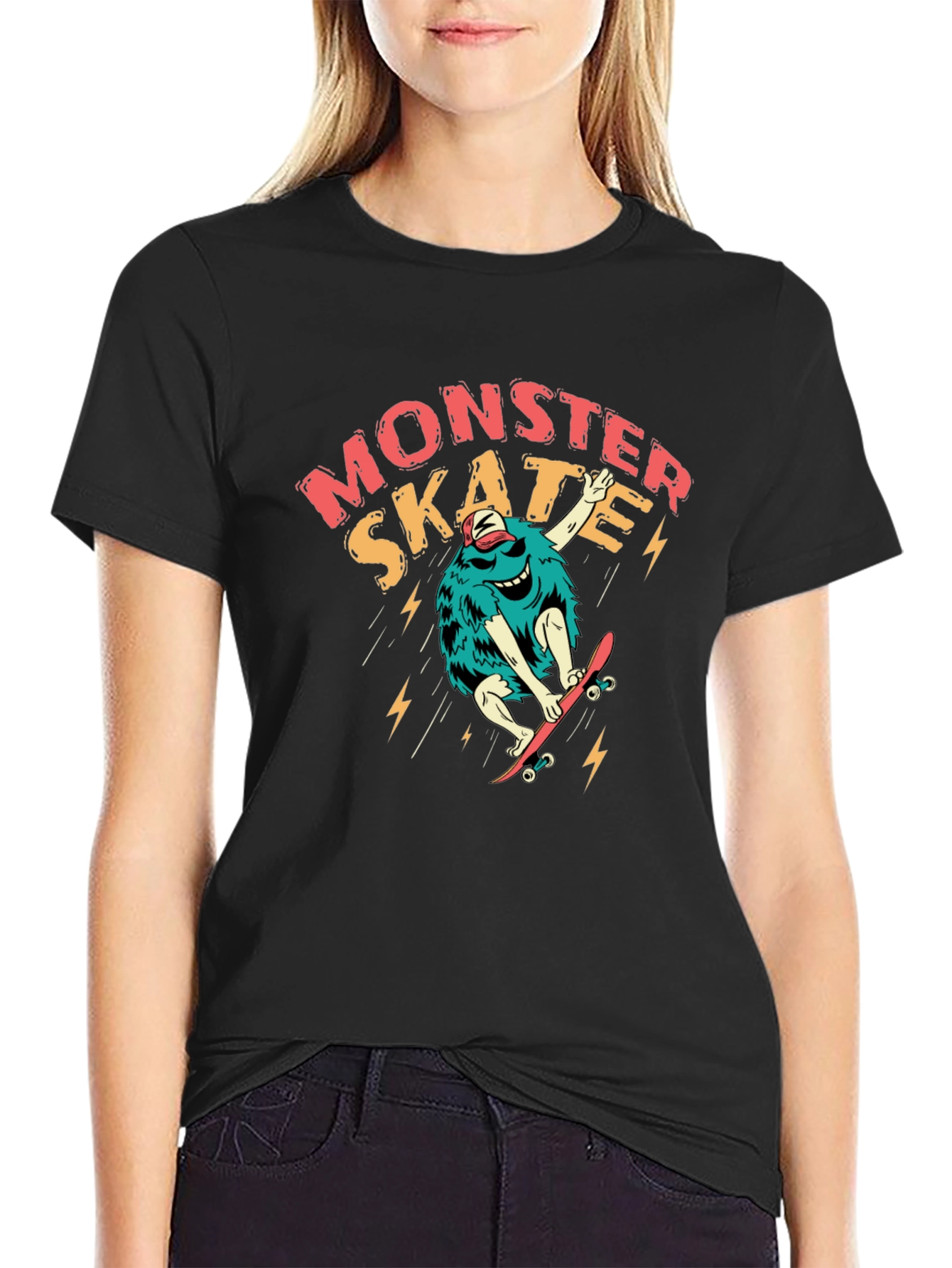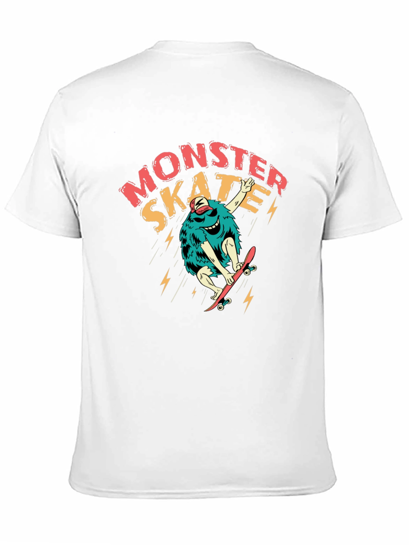 Show off your unique style with this eye-catching Monster Skate T-Shirt. This cool black tee features a vibrant graphic print of a furry blue monster shredding on a skateboard, complete with lightning bolt accents. The words "Monster Skate" are printed above the monster. Perfect for skaters and fans of bold, fun designs, this t-shirt is sure to turn heads. Made from comfortable fabric, this tee is ideal for everyday wear. Add some fun to your wardrobe!