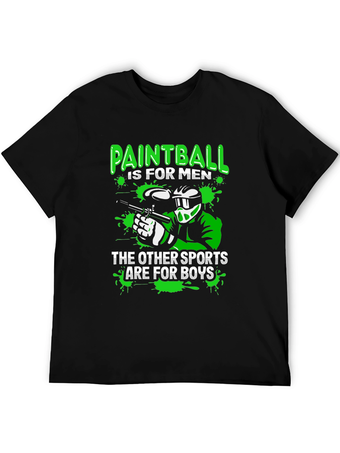 Show off your love for paintball with this bold graphic t-shirt. The black tee features a vibrant green and white design proclaiming "Paintball is for Men, The Other Sports are for Boys", accompanied by a paintball player graphic. Made from a comfortable fabric, this shirt is perfect for casual wear, paintball events, or as a gift for the paintball enthusiast in your life. Get yours today and wear your passion with pride!