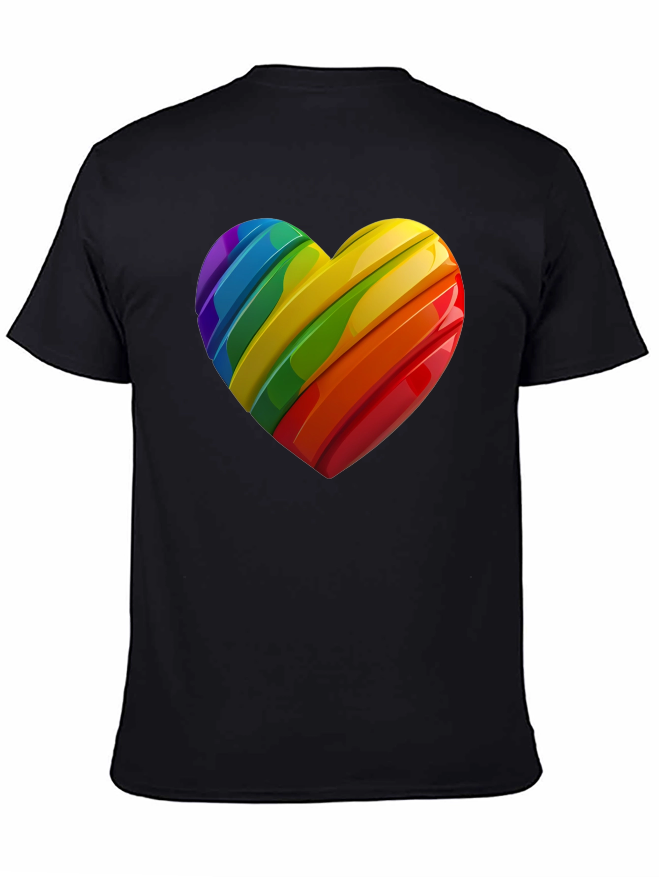 Show your pride with this stylish black t-shirt featuring a vibrant rainbow heart design. The heart is rendered in glossy, eye-catching colors, making a bold statement. Made from what appears to be a comfortable cotton blend, this tee is perfect for everyday wear, pride events, or simply expressing yourself. The classic fit and short sleeves make it a versatile addition to any wardrobe. Let your true colors shine with this unique and expressive t-shirt. Available in multiple sizes.