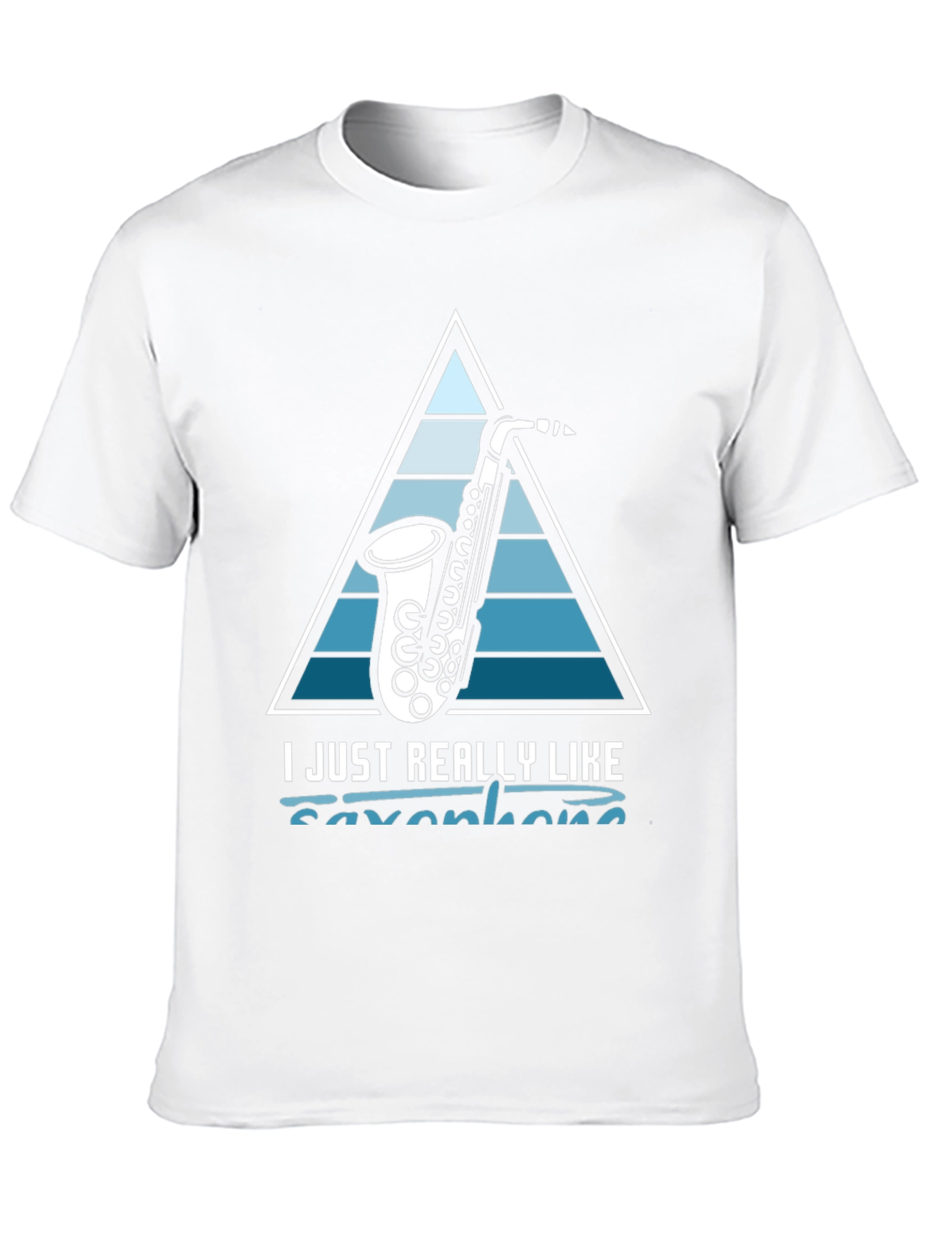 Show off your love for music with this unique "I Just Really Like Saxophones" T-shirt! This stylish tee features a bold design of a saxophone silhouette within a triangle of blue hues, making it a standout piece for any music enthusiast's wardrobe. Made from a comfortable black fabric, this shirt is perfect for everyday wear, music events, or casual outings. Its eye-catching design ensures you'll be noticed and appreciated by fellow saxophone lovers. Express your passion in style with this comfortable and statement-making tee!