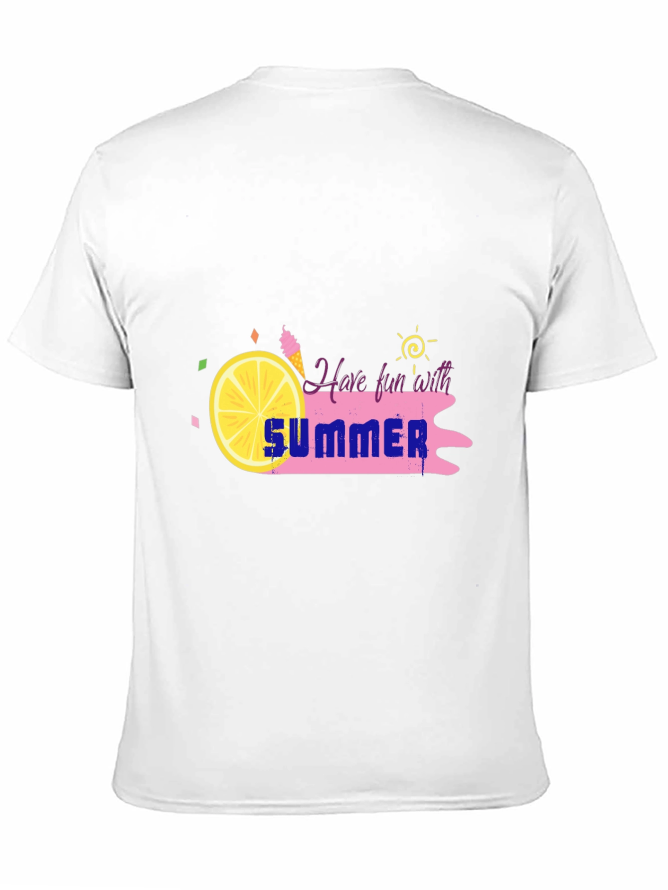 Embrace the summer vibes with this stylish black t-shirt. The design features a playful graphic with a slice of lemon, ice cream cone, and the word "SUMMER" in a cool graffiti style, all set against a vibrant pink backdrop. Perfect for casual outings, beach trips, or just lounging around on a sunny day. The design evokes a sense of carefree fun. Made from a comfortable fabric, this tee is both fashionable and easy to wear. Add a splash of summer to your wardrobe!