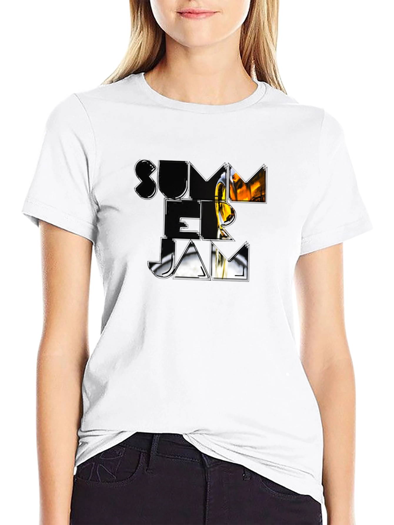 Rock this stylish black t-shirt featuring a unique "Summer Jam" graphic design. The bold, eye-catching graphic adds a cool and trendy vibe to your wardrobe. Made from comfortable materials, this tee is perfect for casual outings, music festivals, or simply lounging around. Its classic fit and durable construction ensure long-lasting wear. Express your love for music and summer vibes with this must-have t-shirt. Pair it with your favorite jeans or shorts for a laid-back, fashionable look. Add this statement piece to your collection and turn heads wherever you go!